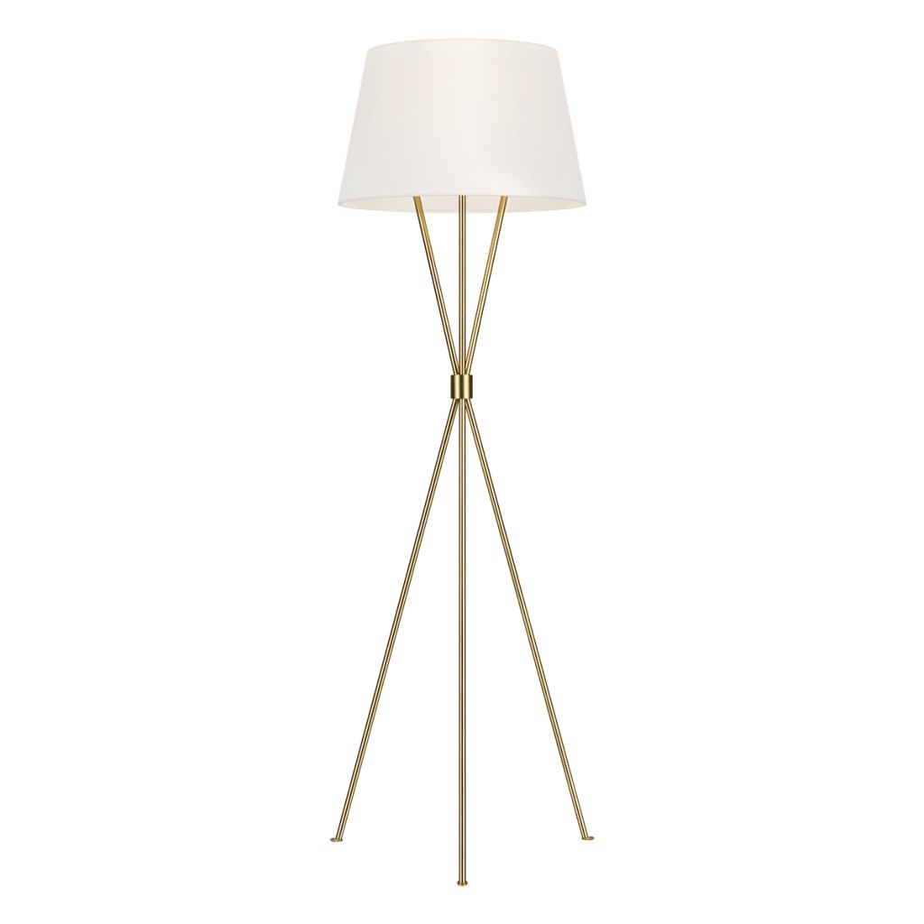 The Aged Iron Penny Floor Lamps are timeless and sleek, with a mid-century-inspired tripod base and elongated legs that meet at a tailored point. Penny Floor Lamps include a fabric shade in White Linen. LS373